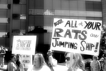 It’s going to be a great show. I wonder who cries first, Addington? Mukasey? Gonzales? Bush, Cheney, Negroponte? Limbaugh? My worthless dollar is on Limbaugh…..