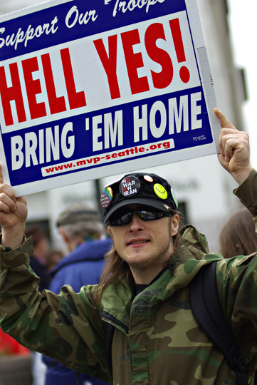 As the old media told us in their reportage, this event was the smallest turnout yet for an Iraq war protest. Interestingly enough, last year, the Seattle Seahawks only averaged 67 thousand humans per home game.