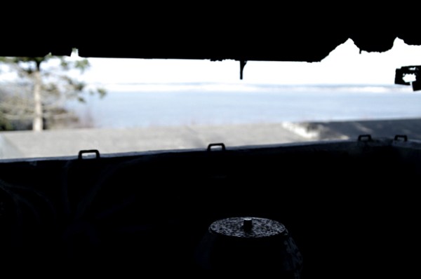 Looking through steel-shuttered windows