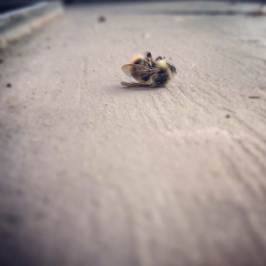 Dead bee in the middle of some road. Even still more flotsam jetsam and life rolls on.